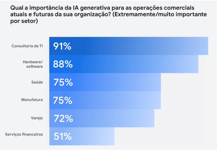 Estudo apresentou importância da IA generativa para as operações comerciais por setor/Imagem: Reprodução/Google Cloud